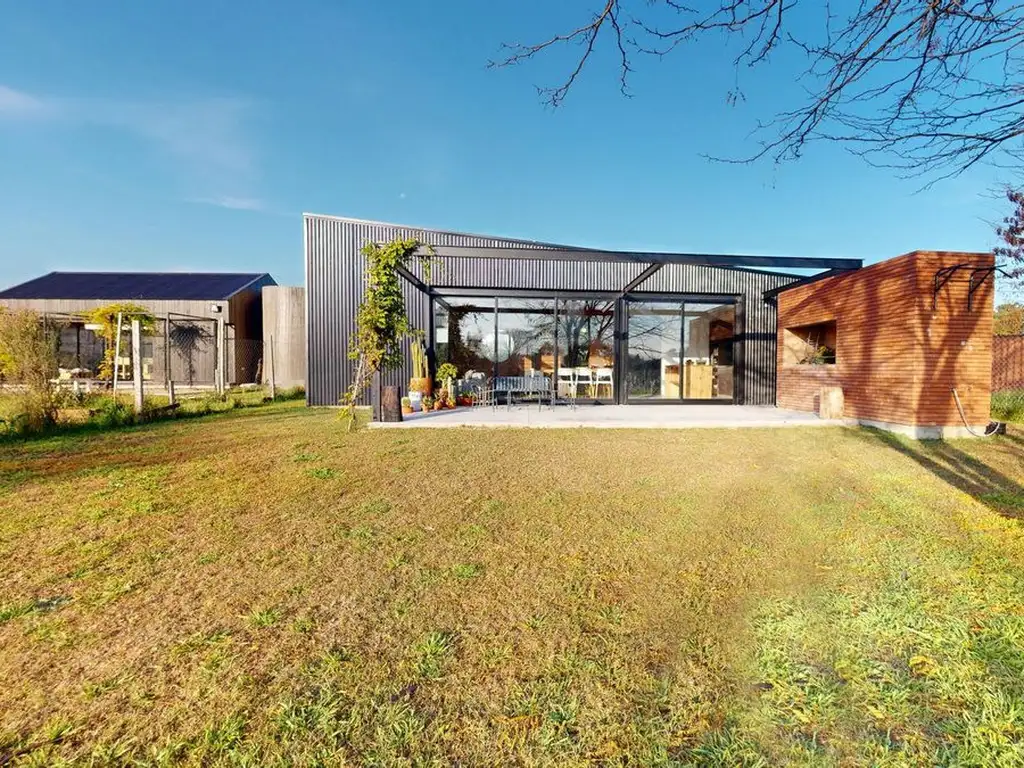 La casa cuenta con dos dormitorios, dos baños completos y un cómodo living-comedor integrado a la cocina, que a través de un ventanal se conecta con el parque exterior. Este espacio verde privado incluye una práctica parrilla, ideal para disfrutar de reuniones y momentos de esparcimiento al aire libre.