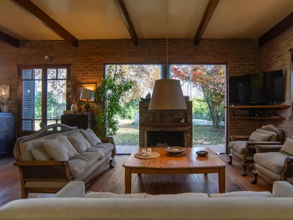 Quincho cerrado (aberturas de PVC), con baño. Estudio/atelier con acceso por escalera independiente (con baño a reciclar).Arboleda añosa (Roble, Liquidambares, Jarcarandás)