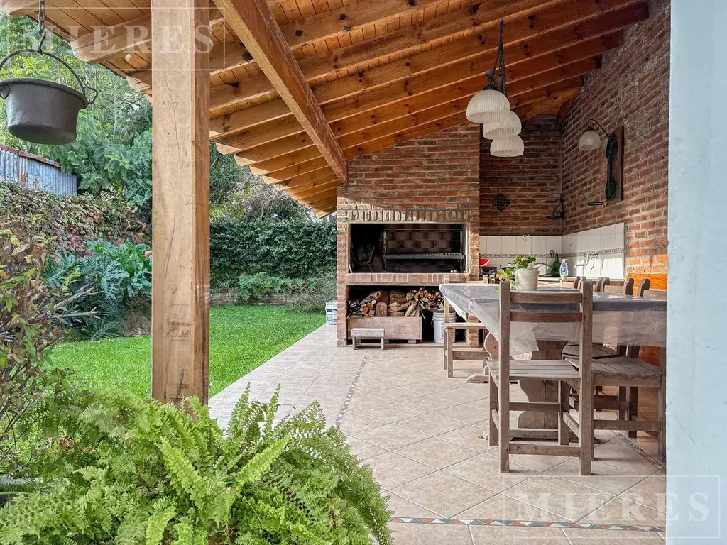 Al entrar tenemos el living - comedor con chimenea, baño completo, cocina con comedor diario y lavadero. Bajando, accedemos a un amplio playroom con salamandra, salida al jardín y al corredor lateral. Cuenta con entrada independiente y se comunica internamente con el garaje.