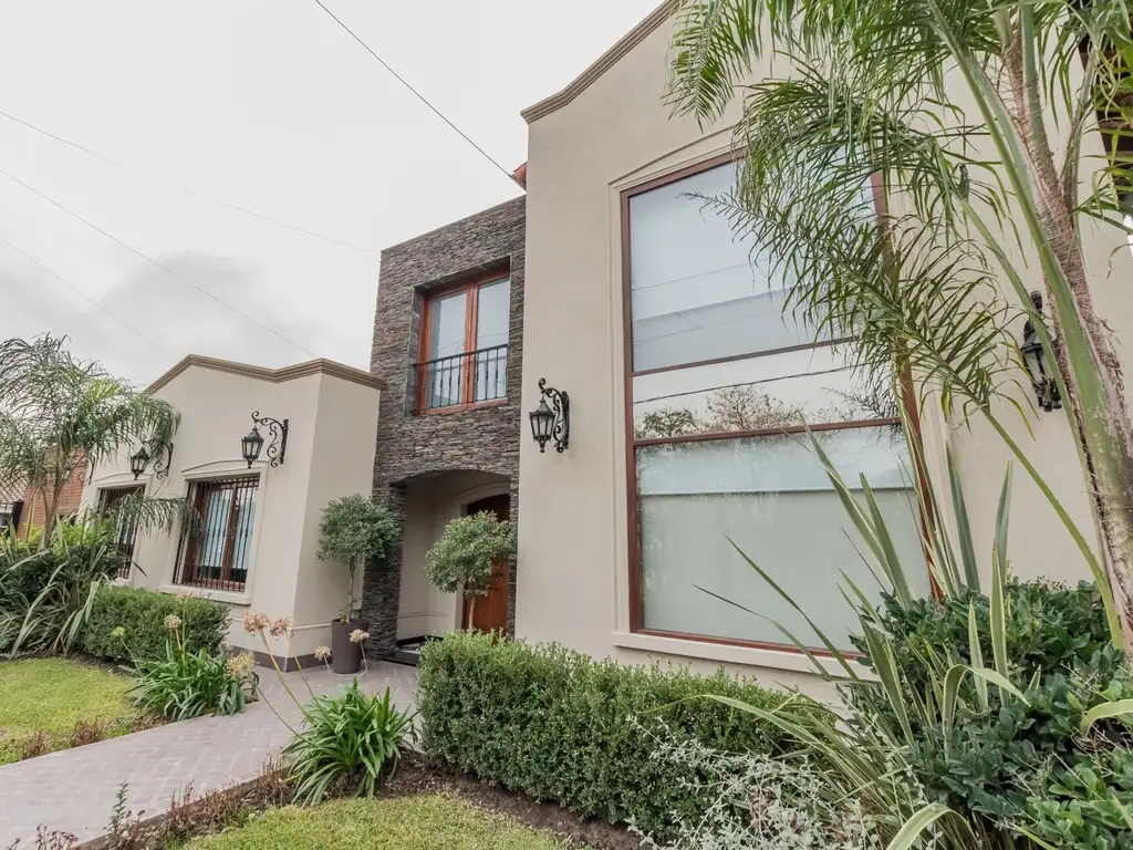 En el exterior nos encontramos con un hermoso jardín parquizado de 270 mts2, con circuito de riego, iluminación y gran piscina de 8 x 4 mts, la cual posee bomba, sistema de filtrado y caldera climatizadora. Deck de madera color roble oscuro y un agradable sector de parrilla con muebles de guardado y barra.