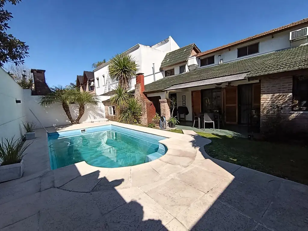 La propiedad cuenta con 4 dormitorios, pileta con sol todo el día, quincho con parrilla cubierta, espacio verde y cuarto de servicio.