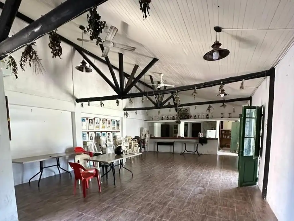 Salón de usos múltiples, quincho con parrilla, cocina, baños y jardín amplio.