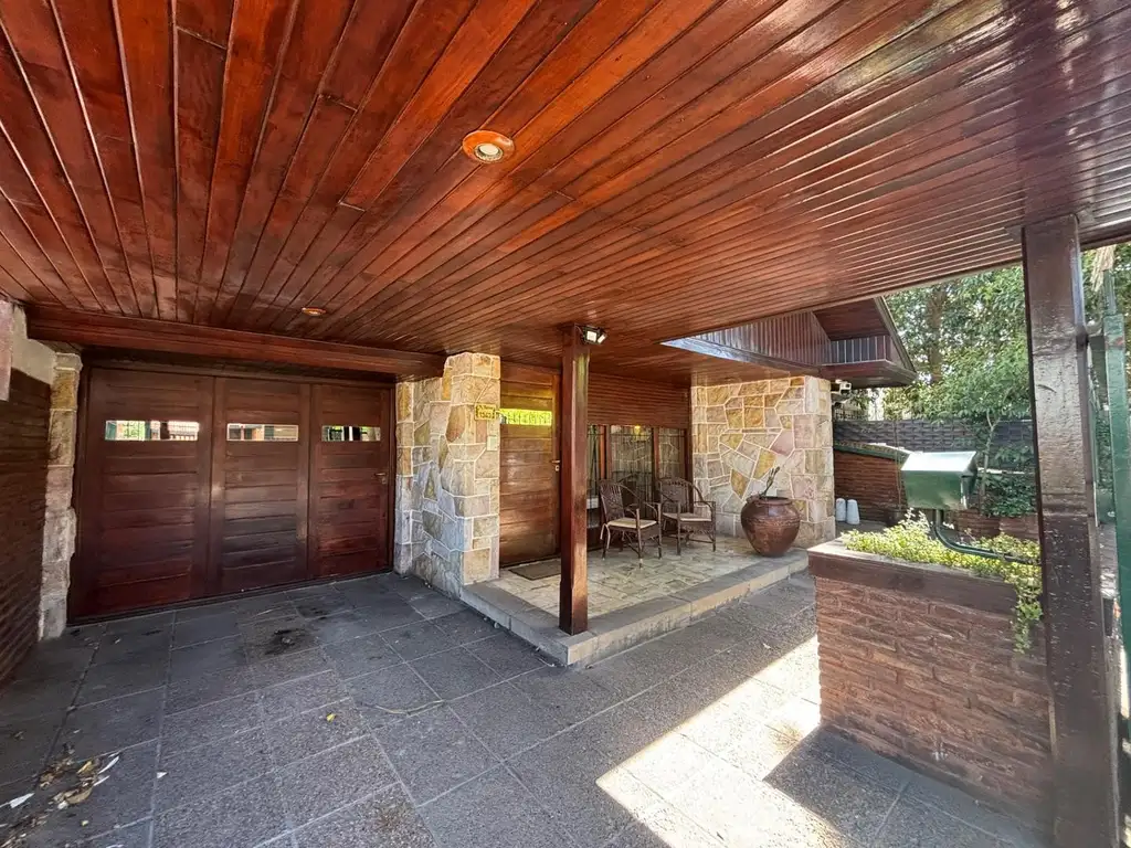 Cómodo quincho con parrilla y un parque amplio con espacio suficiente para instalar una pileta sin perder superficie verde.