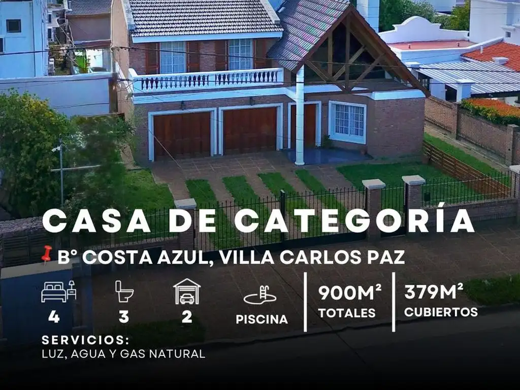 SE VENDE EXCLUSIVA PROPIEDAD DE 3 DOR, Y PISCINA.B COSTA AZUL NORTE, VILLA CARLOS PAZ.
