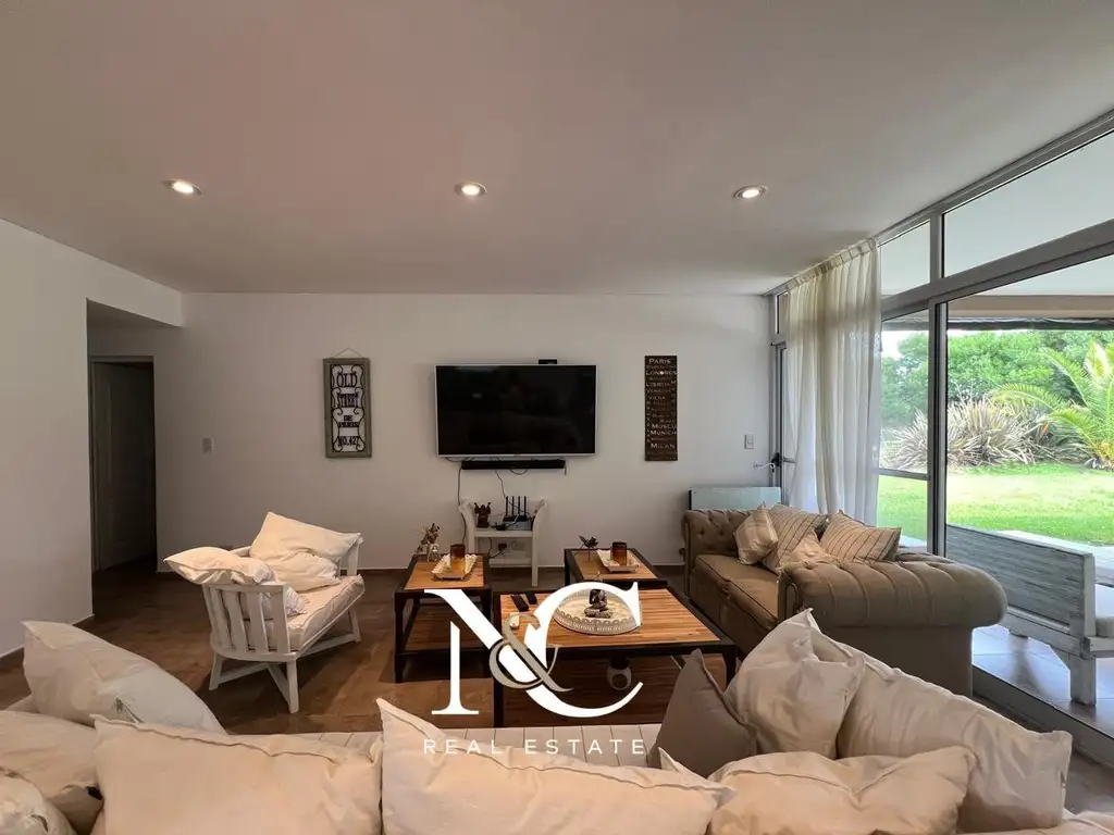 La propiedad cuenta con un living comedor , con cocina integrada, lavadero independiente. Tres dormitorios, dos de ellos en suite, y uno que comparte el baño con la parte social, posee tres baños completos. Un toilette en el exterior, que brinda comodidad para las reuniones o el uso de la pileta. Todos los ambientes están climatizados con aire acondicionado, asegurando el máximo bienestar durante todo el año.