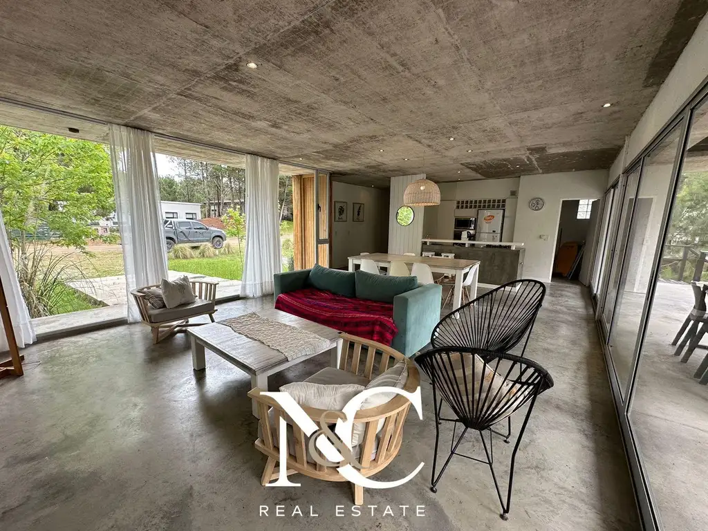 En planta alta posee cocina integrada al living comedor con salida a galería con parrilla con vista al bosque. 1 dormitorio y un baño completo.