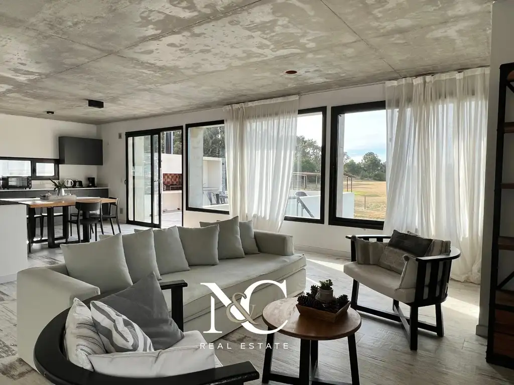 Casa de estilo moderno en venta en el barrio Ecuestre, ubicado en Costa Esmeralda, un entorno privilegiado en la Costa Atlántica. Esta propiedad de reciente construcción, se destaca por su diseño contemporáneo y su ubicación única con fondo a la cancha de polo.