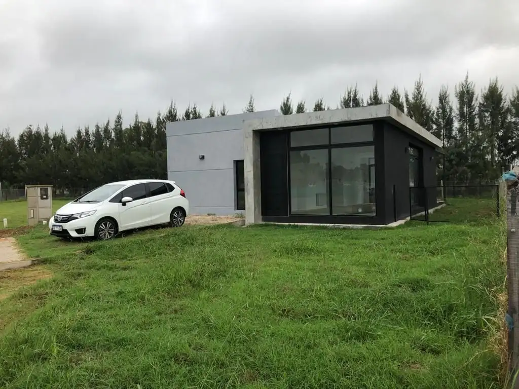 Casa de estilo moderno de 150m² totales desarrollada en dos volúmenes sobre planta baja. El área publica cuenta con un amplio living comedor, una cocina funcional con isla/desayunador, un toillete de bienvenida, amplios ventanales con vista al jardín y una cómoda galería semicubierta con parrilla. El área privada consta de un dormitorio en suite, dos amplios dormitorios y un baño completo. Todos los ambientes cuentan con amplios ventanales.