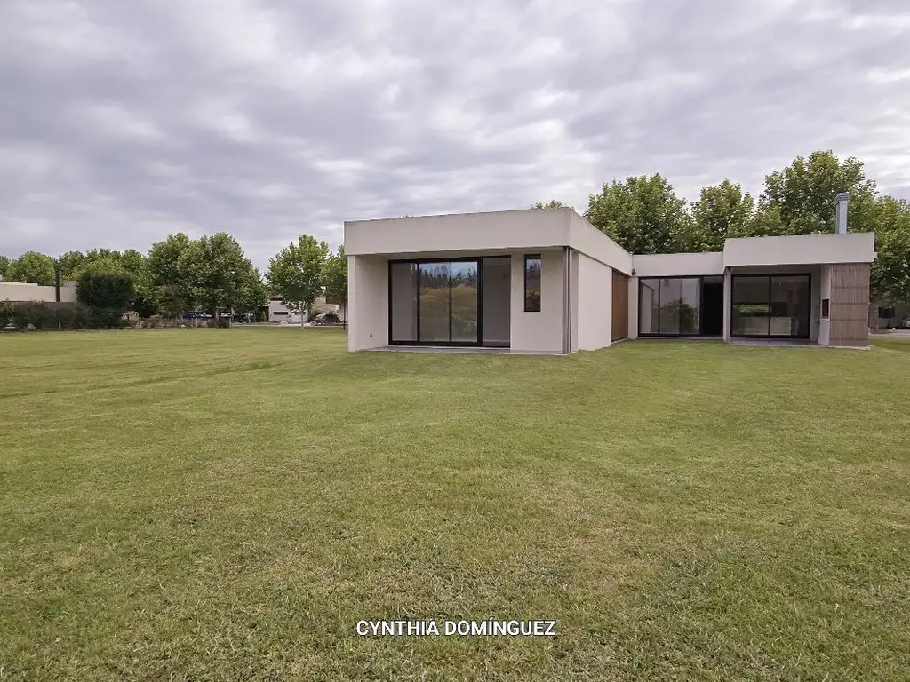 La casa dispone de tres ambientes, master suite con vestidor y dos dormitorios con placares que comparten un baño completo y lavadero independiente. Amplio comedor con cocina integrada, la cual se encuentra equipada con isla central, horno, anafe y mesadas en granito, tres baños (uno en suite) y calefacción por losa radiante con caldera instalada. Los grandes ventanales enmarcan el parque y otorgan una conexión permanente con el exterior.