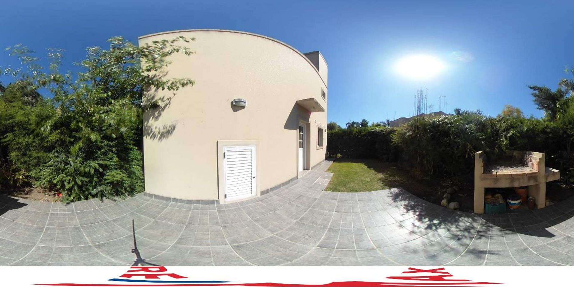 Retiro libre (verde) de 5 mts. con patio y fogón para parrilla y tiene un lugar de guarda bajo escalera con puerta de aluminio blanco.
