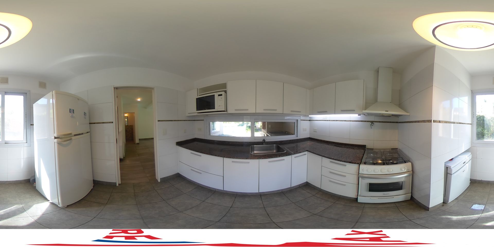 Espacio para parrilla, mesada de granito con pileta de acero inoxidable y grifería monocomando marca FV e instalaciones para lavarropas en bajo mesada.