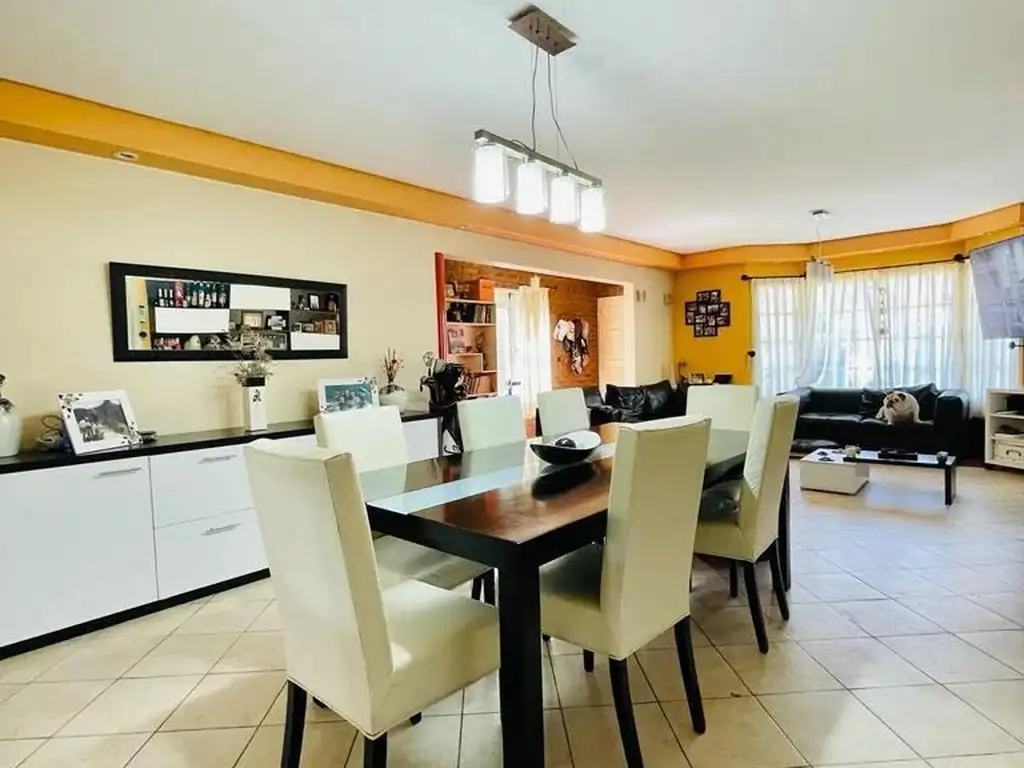 EDIFICADO EN DOS PLANTAS , ESTADO IMPECABLE , CONSTA DE DE EN PB. LIVING -COMEDOR - COCINA INTEGRADA POR BARRA DESAYUNADORA- AMPLIO QUINCHO CON PARRILLA - LAVADERO- PARQUE - GALERIA CUBIERTA O GARAJE - PISCINA REVESTIDA INTEGRAMENTE CON VENECITAS CON CLIMATIZADOR .-