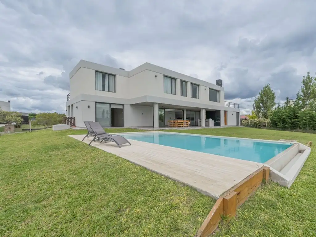 Piscina tipo “sin fin” (10 x 5 m) con borde infinito a la laguna, deck antitérmico, luces, playón seco, bomba de llenado y filtro.