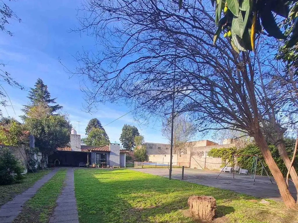 Gran jardín delantero, con superficie para cancha de tenis/ futbol y gran pileta.