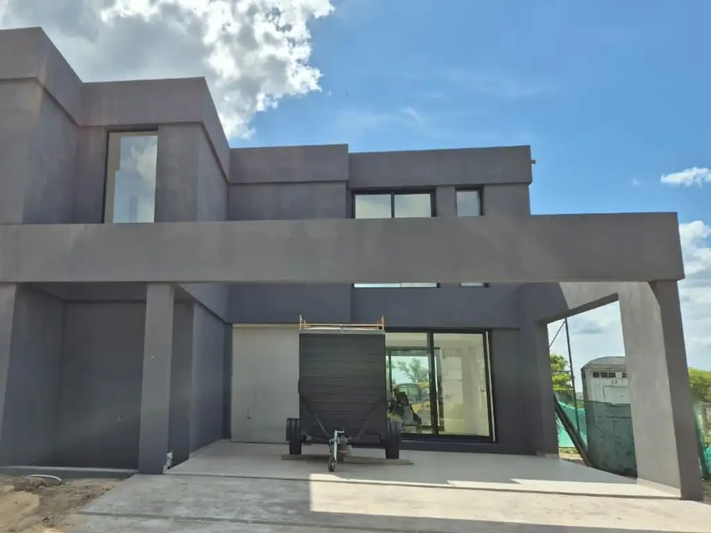 La casa está hecha con materiales modernos, tonos neutros, grandes ventanas y ventanales con carpintería de aluminio con doble vidrio, losa radiante, instalaciones para aire acondicionado.
