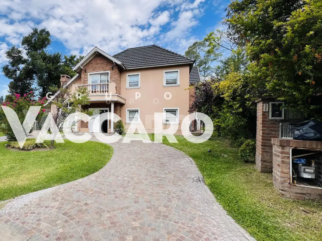 La edificación se desarrolla en dos plantas: con una galería para estacionar un vehículo, Living, Comedor y cocina con barra desayunador, Lavadero escritorio, baño de recepción galería cubierta con parrilla y pileta con gran parque, y un baño de exterior, en la planta alta dos habitaciones que comparten un baño y la habitación principal está en suite con vestidor.