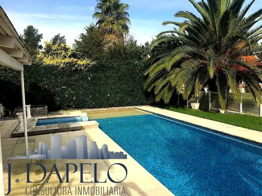 compuesta por 4 dormitorios, 2 baños, cocina comedor diario, amplio living con hogar, lavadero y playroom, piscina climatizada, riego por aspersión, grupo electrógeno.