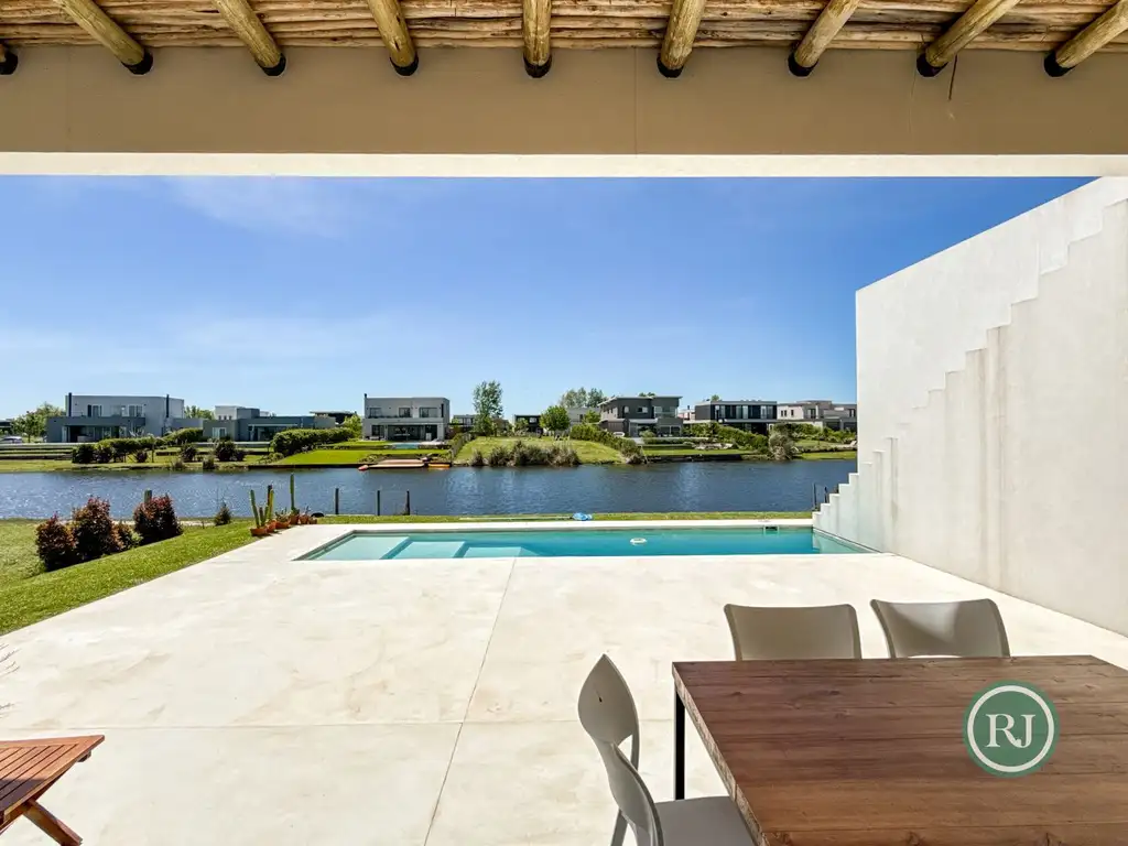 De estilo mediterráneo desarrollada en una sola planta sobre lote a la laguna con orientación Noreste y gran diseño y calidad constructiva