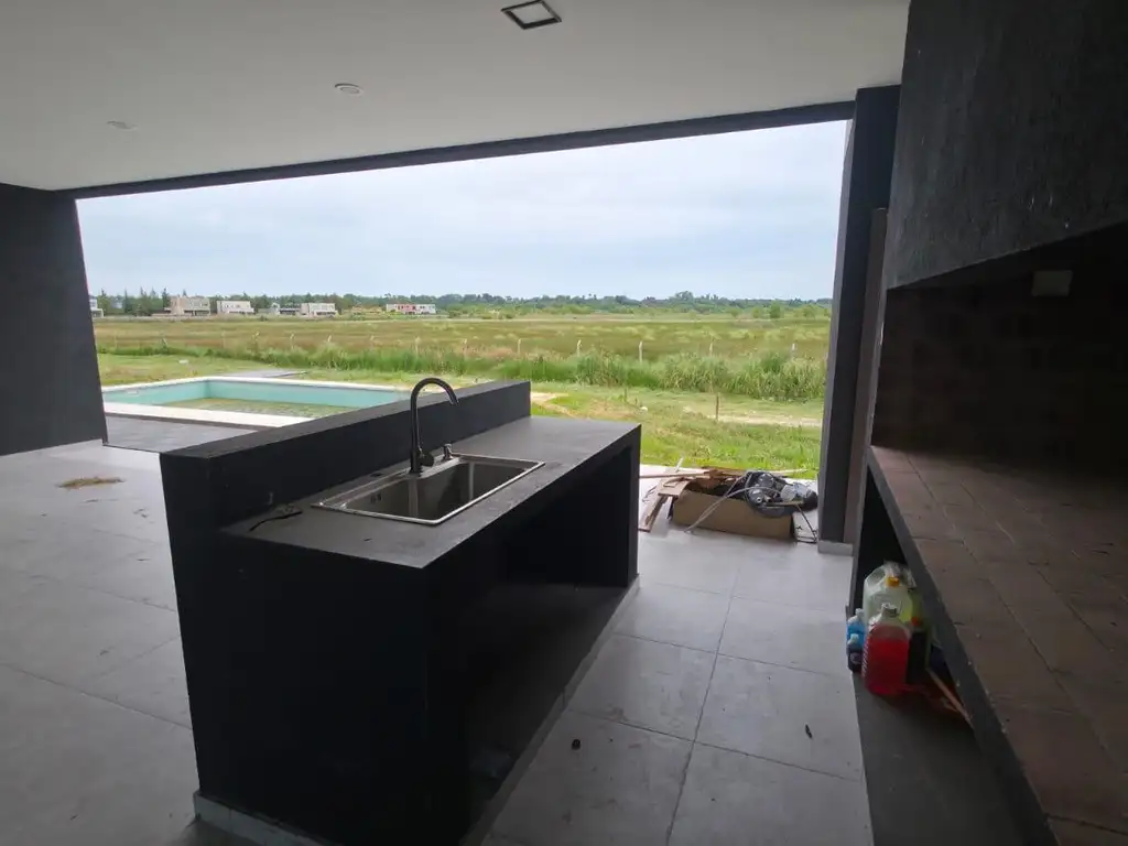 Galería cubierta con parrilla, mesada y bacha