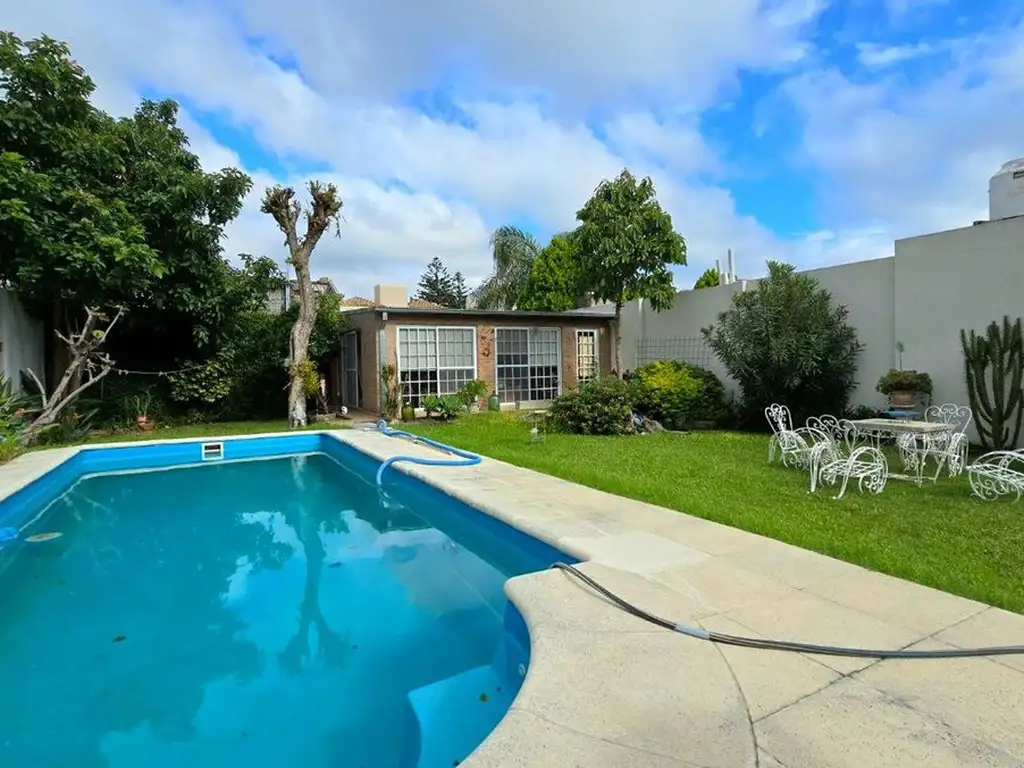 Esta propiedad cuenta con patio, pileta, quincho y garaje cubierto para dos autos.