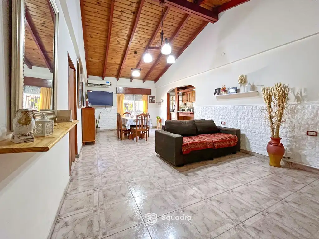 Observaciones: La propiedad cuenta en total con cuatro dormitorios, dos cocinas y dos baños, distribuidos entre la vivienda principal y la vivienda ubicada en la parte posterior. Propiedad desarrollada en lote con vivienda principal y segunda vivienda al fondo. Distribución funcional. Posibilidad de uso multifamiliar. Cuenta con patio, galería y parrillero. Cochera.