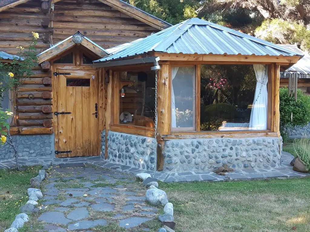Una cabaña principal de 3 ambientes con living, comedor y cocina integrada, lavadero y despensa separada. Totalmente equipada con gas natural con 3 estufas y hogar a leñas hecha con troncos ciprés, haciendo un ambiente muy cálido y acogedor.