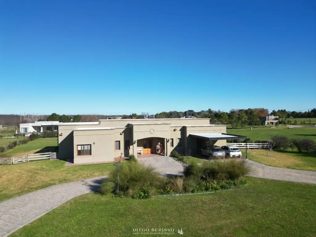Casa estilo Campo con excelentes detalles de terminación. Cuenta con 3 dormitorios (uno en suite con vestidor). Un dormitorio exterior con baño completo para húespedes o de servicio. Amplia Cocina con isla desayunador. Comedor integrado a living con hogar a leña. Baño completo. Toilette de recepción. Lavadero y despensa.