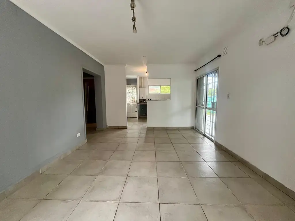 Descripcion: casa desarollada en una planta.Ingreso al living comedor con pisos ceramicos en color gris. Cocina integrada con muebles bajo mesada en melamina blanca , mesada de marmol gris y bacha jonshon. Pasillo distribuidor , a las habitaciones y baño completo. Galeria pasante semicubierta , con espacio para dos vehiculos. Jardin con parrillero y espacio de guardado. La propiedad tiene proyeccion para ampliar.