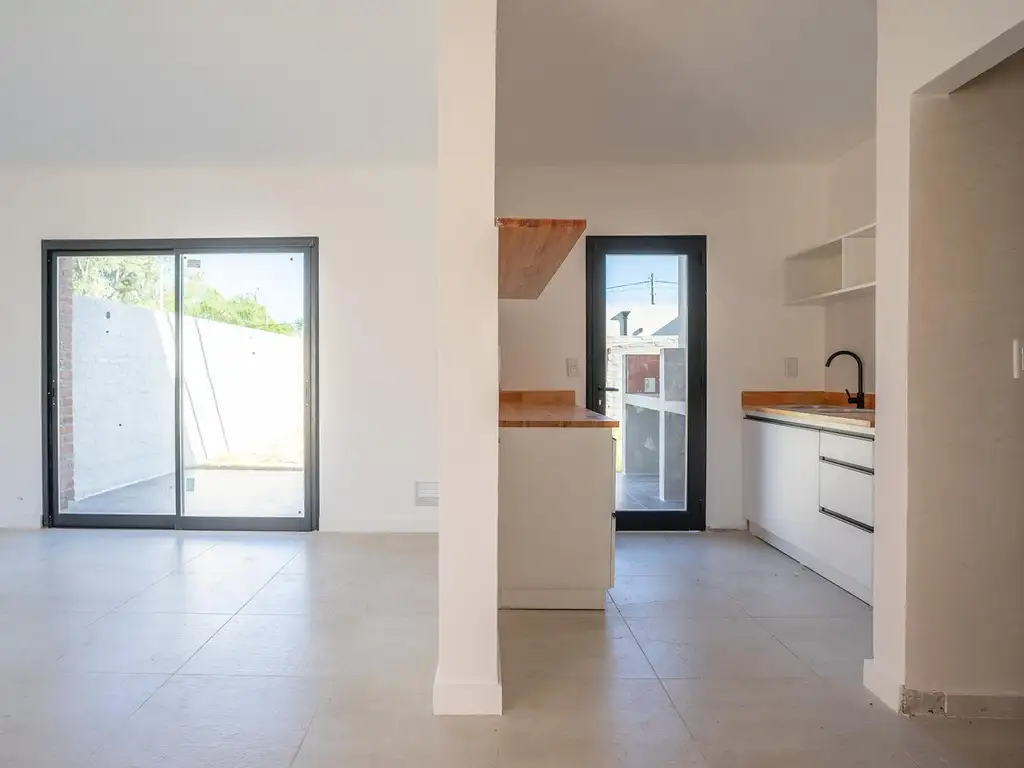 UNIDAD: Cuenta con ingreso independiente, cochera al descubierto y jardín retiro. En el interior, la planta baja contiene la cocina con barra desayunadora, un baño de recepción, y un amplio estar-comedor en comunicación con el jardín delantero y el del fondo de la vivienda, integrado con una galería con parrillero y espacio para lavarropa. Además, en planta alta se ubican dos dormitorios simples, un baño principal y un dormitorio matrimonial con vestidor y baño en suite.