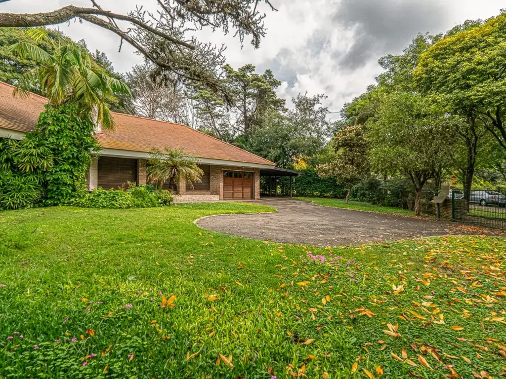 En el exterior, la propiedad cuenta con un quincho vidriado con parrilla y una vista panorámica del terreno, una pileta, y una cochera para 3 vehículos, de los cuales 1 está cerrada con portón automático y 2 son techadas. Adicionalmente, posee una casa de huéspedes con cocina, comedor y 1 dormitorio.
