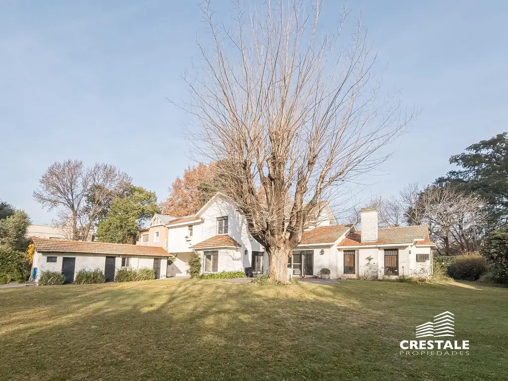 En planta alta se encuentran tres dormitorios: el principal con vestidor y baño en suite, y otros dos dormitorios asistidos por dos baños completos. Todos los ambientes son generosos en dimensiones y bien iluminados. La casa está equipada con calefacción por radiadores en planta baja y calefacción central en toda la casa. Jardín parquizado con piscina .Amplio quincho . Baño exterior y depósito de guardado.