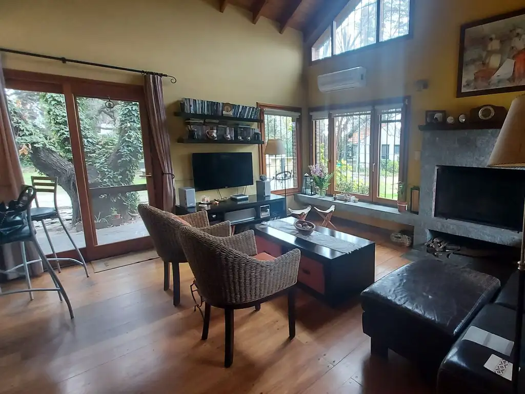 Living comedor principal con doble altura luminoso con comedor y cocina integrada, la conina con muebles de madera, tres habitaciones, baño completo. Una de las habitaciones en suite con vestidor. Lavadero.