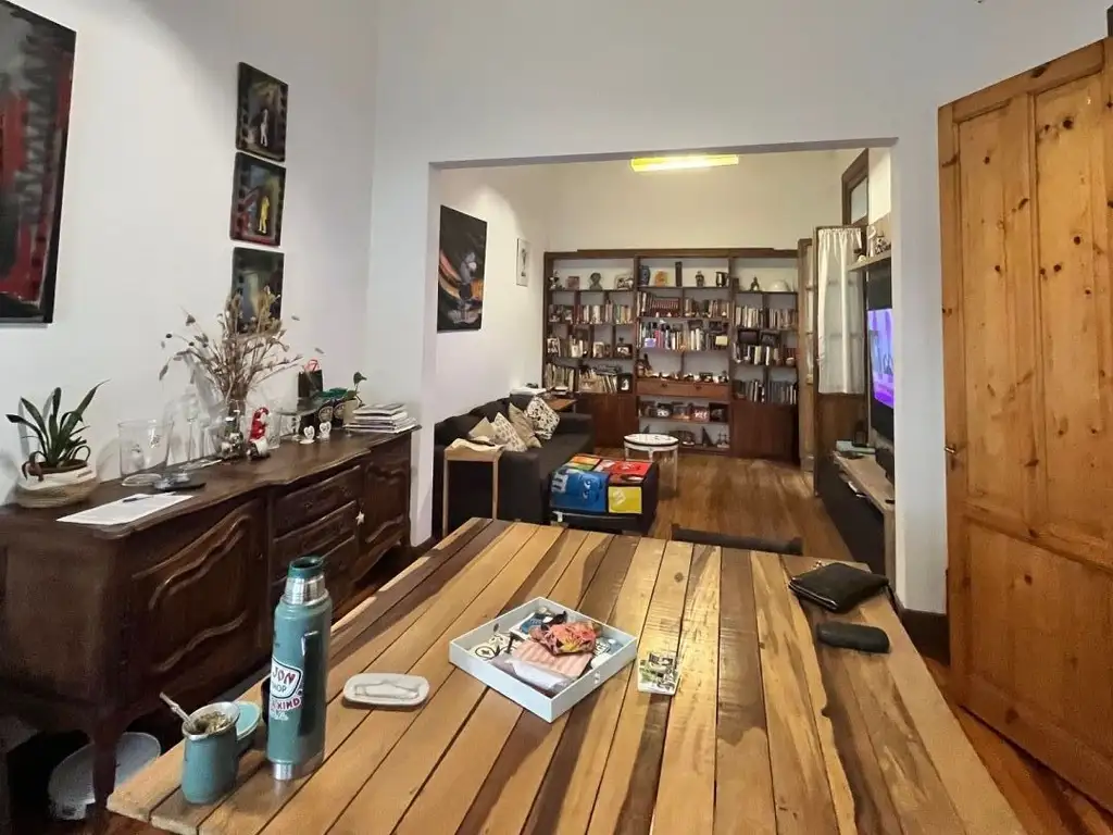 EXCELENTE VIVIENDA PARA UNA FAMILIA CON HIJOS. Moderna, pero conservarno el espíritu de la casi centenaria casa. Se ingresa desde un hall de entrada, el cual nos conduce al living comedor, un amplio ambiente con ventana a la calle, al baño de recepción, al acceso a la planta alta y por último a la amplia cocina totalmente equipada, moderna, con equipamiento de calidad; así mismo, la cocian nos conduce a un maplio espacio comedor diario o sala de usos múltiples, que se comunica con el living comedor. En todos los detalles se puede observar la calidad de materiales y terminaciones.- En planta alta, a la cual se accede por la tradicional escalera de estas casa ex-municipales, se llega a un primer dormitorio con placard, y ventana a la calle y continuando por la escalera se llega a los dos dormitorios principales, ambos con placares y al baño principal instalado con bañera donde, una vez mas, podemos ver los detalles de terminación y la calidad de materiales.- Desde la planta alta, se sale a un patio terraza, que es el techo del comedor diario, donde se ubica una parrilla. Un bello espacio para tomar sol o pasar momentos al aire libre.- El estado general de la propiedad es muy bueno, aunque requiere un embellecimiento por falta de pintura y unos arreglos de humedad que faltaría terminar lo estético.-