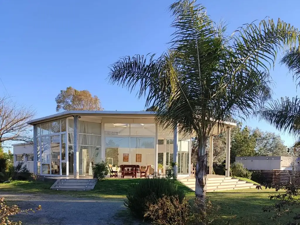 Ubicada sobre ruta 2- km. 284,5, en el barrio Los Altos de los Arrayanes ( Río Negro), esta propiedad se distingue por su arquitectura octogonal con amplias puertas-ventanales que se abren en su totalidad, techo de cúpula vidriada, que le dan gran luminosidad y permiten disfrutar el entorno del parque arbolado y las vistas privilegiadas a la curva del Río Negro.