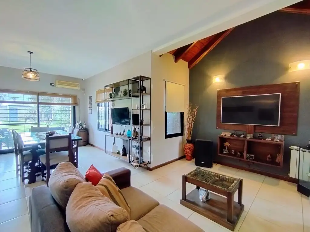 Descripción: Casa de dos plantas. Ingreso a living comedor con cocina semi integrada, ambos con vista al parque, baño completo, completan la planta baja, escritorio/dormitorio y quincho cerrado con parrillero y sector para lavadero. En el exterior pileta y galpón de guardado. En planta alta hall distribuidor tres dormitorios, el principal con vestidor, más un segundo baño completo con ante baño.