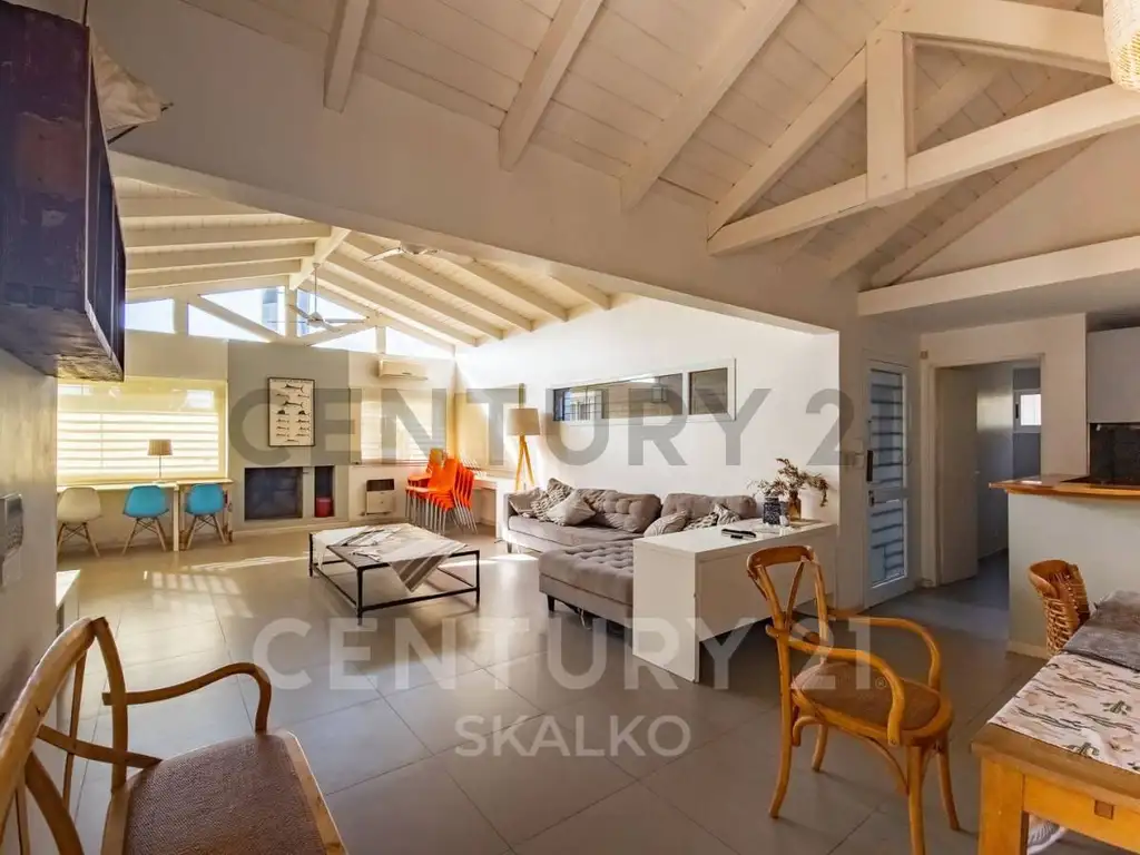 La casa cuenta con un living comedor amplio y luminoso, perfecto para reuniones familiares o con amigos. La cocina, semi integrada mediante una barra desayunadora, está equipada con un espacio de trabajo cómodo y funcional.