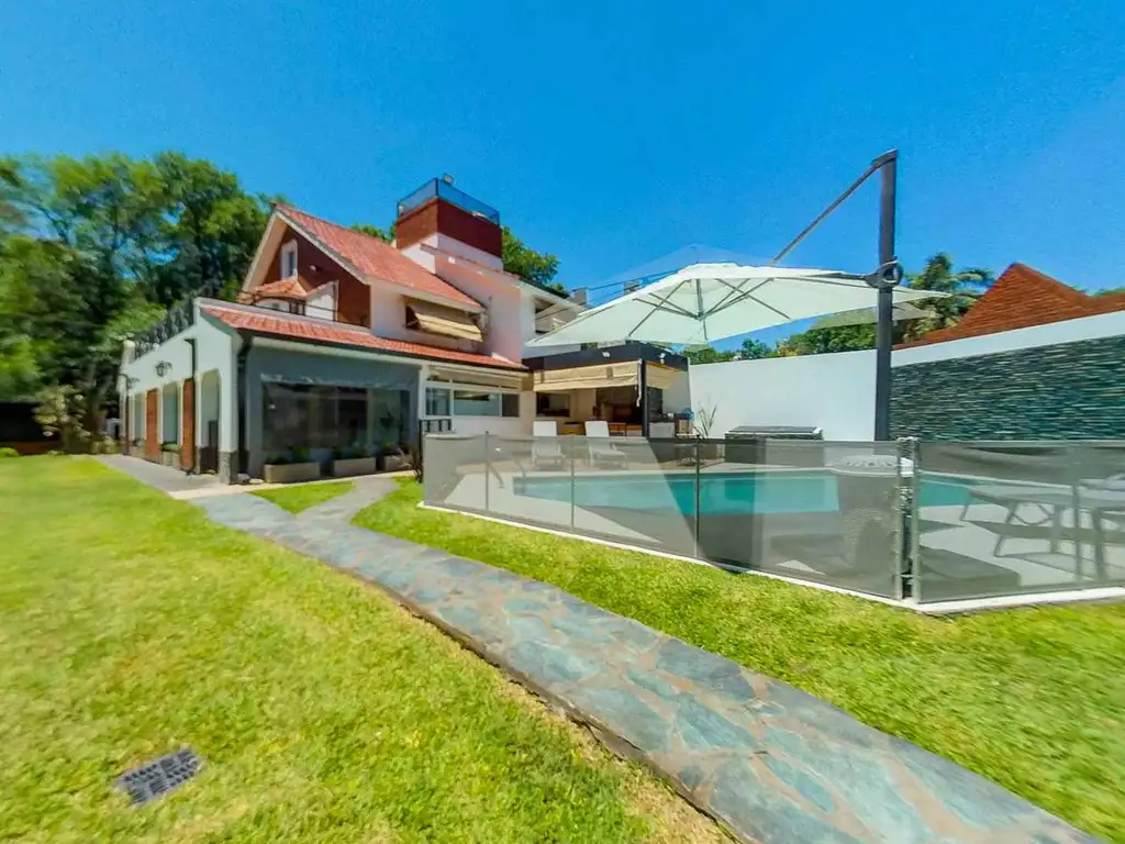 EN PLANTA BAJA: CUENTA CON AMPLIO LIVING COMEDOR DIARIO. BAñO COMPLETO. COCINA TOTALMENTE EQUIPADA. GALERíA SALIDA A UN GRAN JARDíN CON IMPORTANTE VEGETACIóN Y ARBOLES FRUTALES. BAñO DE EXTERIOR. PISCINA COMPLETA CERCADA, ILUMINADA Y CLIMATIZADA. COCHERA PARA 4 AUTOS CON PORTóN ELECTRICO. PARRILLA. FOGONERO