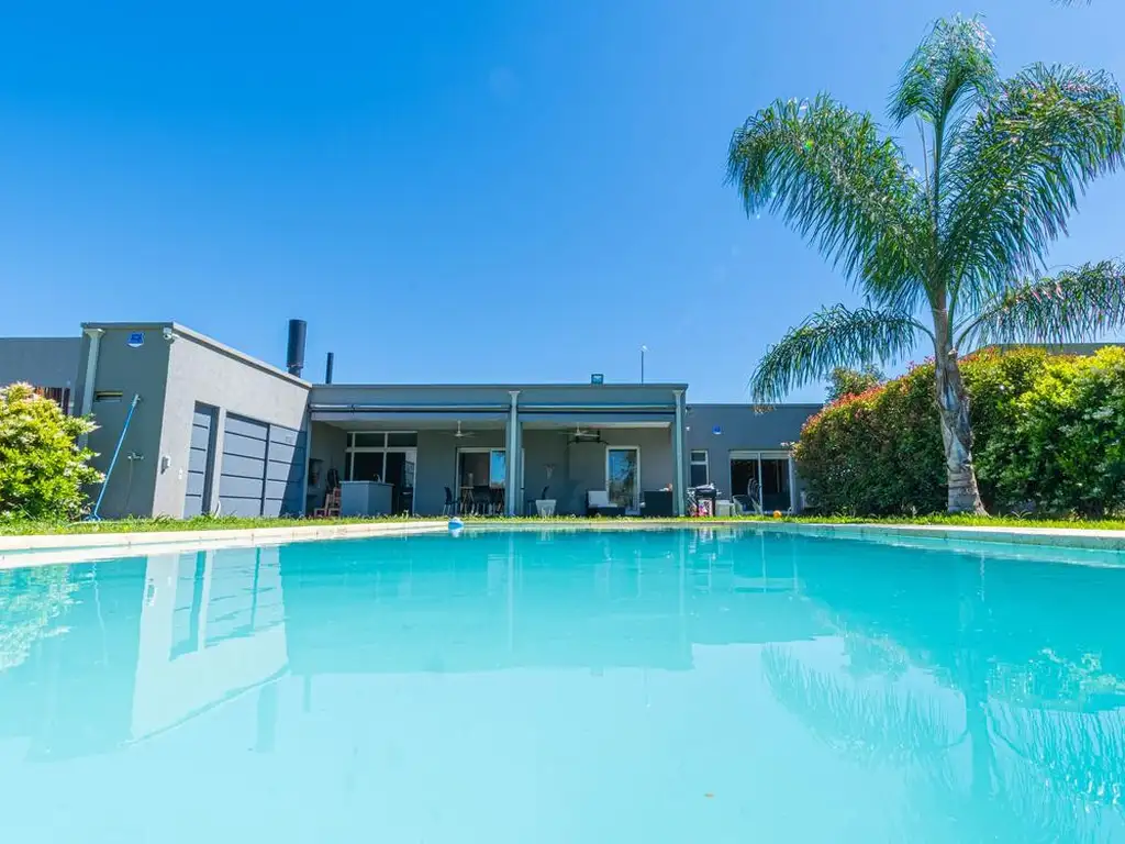 Casa de 2 dormitorios, 3 Baños, cocina integrada al estar-comedor, lavadero, living, galería cubierta, parrilla, horno empotrado, cochera para dos autos con portón automatizado y Pileta de 36m2.