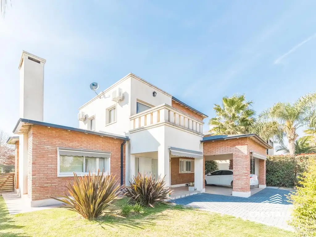 La casa se desarrolla en dos plantas, siendo la planta baja destinada a los espacios sociales. Encontramos al ingresar un amplio espacio de living, estar-comedor, cocina con isla, y un baño de recepción. Adyacente a la cocina hay un quincho cerrado con parrilla y baño, y detrás de ésta se ubica un lavadero independiente. En su parte norte, se desarrolla una galería semicubierta de cómodas dimensiones.