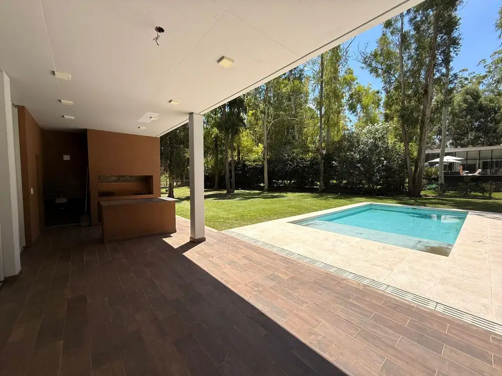 La propiedad cuenta con cochera amplia, hall de ingreso , cocina con isla , living comedor , toilette, 2 baños, galería con asador, mesada con Bacha, toilette exterior, piscina con Solarium, depósito , lavadero y baulera.