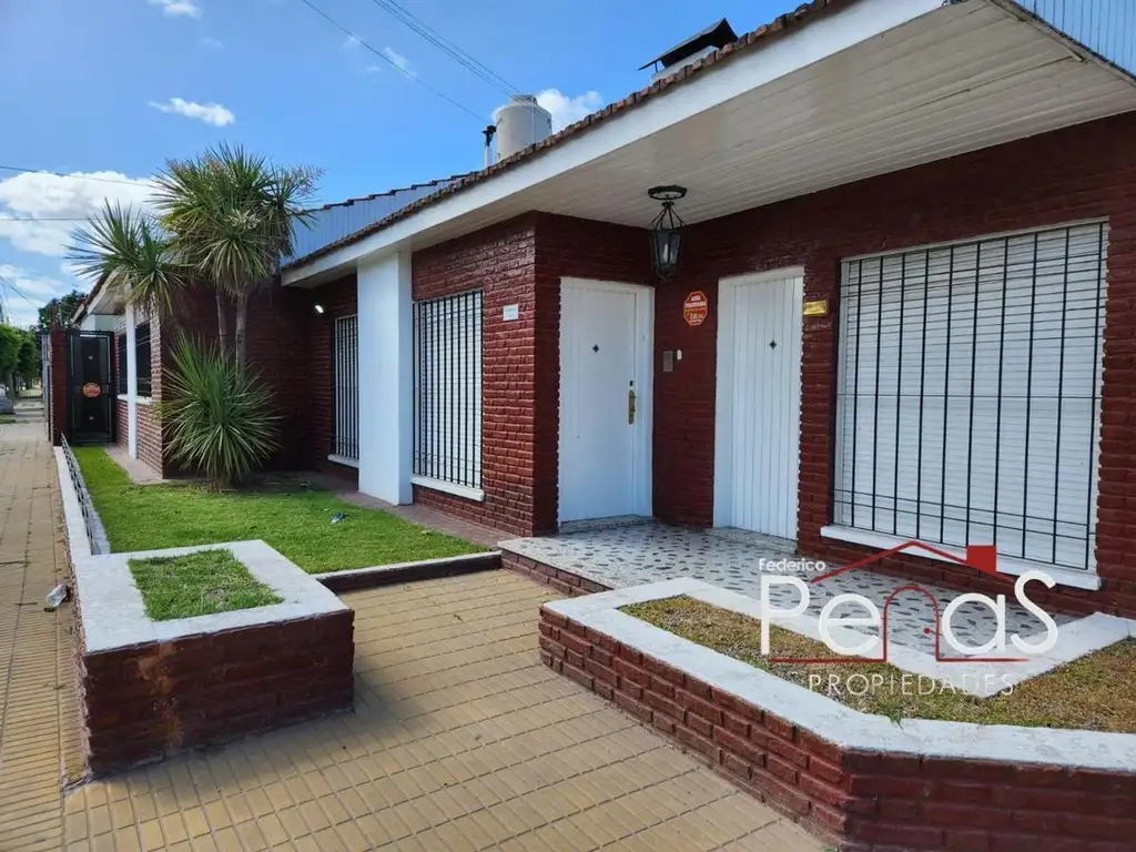 Dos habitaciones, más un consultorio/oficina con entrada independiente. Living comedor con hogar. Cocina. Dos baños. Galeria cerrada o jardín de invierno. Lavadero. Patio y pileta