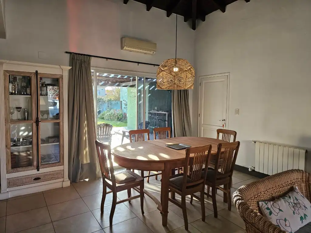 - Comedor íntimo: amplio y luminoso también, con propio mueble diseñado especialmente para espacio de guardado y tv. Con salida a galería y Jardín.