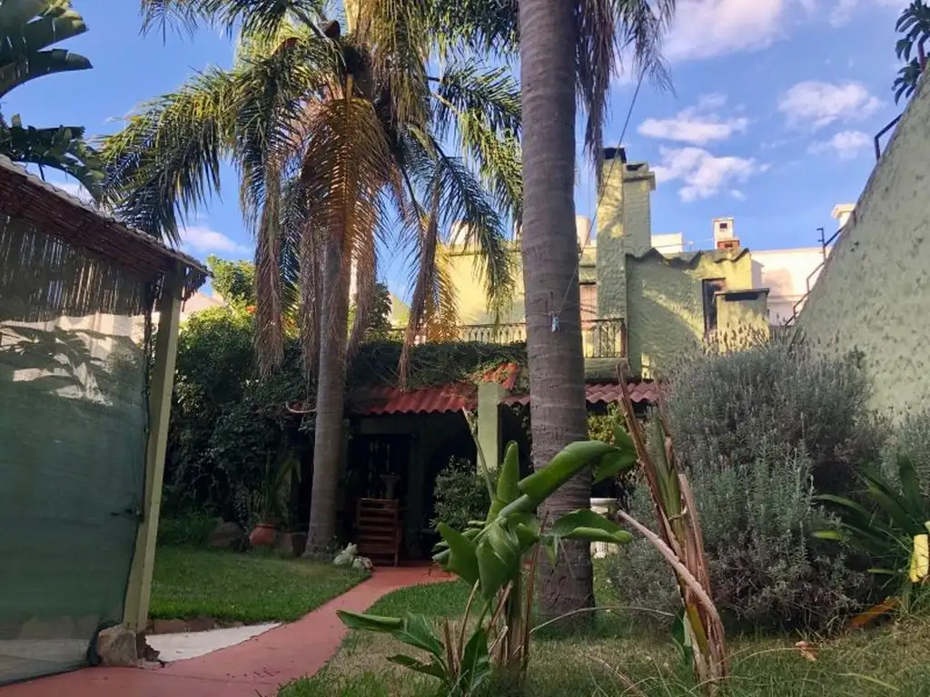 Planta baja living en dos ambientes con lambriz de madera, escritorio, gran comedor con parantes de madera, estar diario en dos ambientes con estufa a leña, gran cocina a reciclar, baño social y servicio (se accede por esacerla independiente).