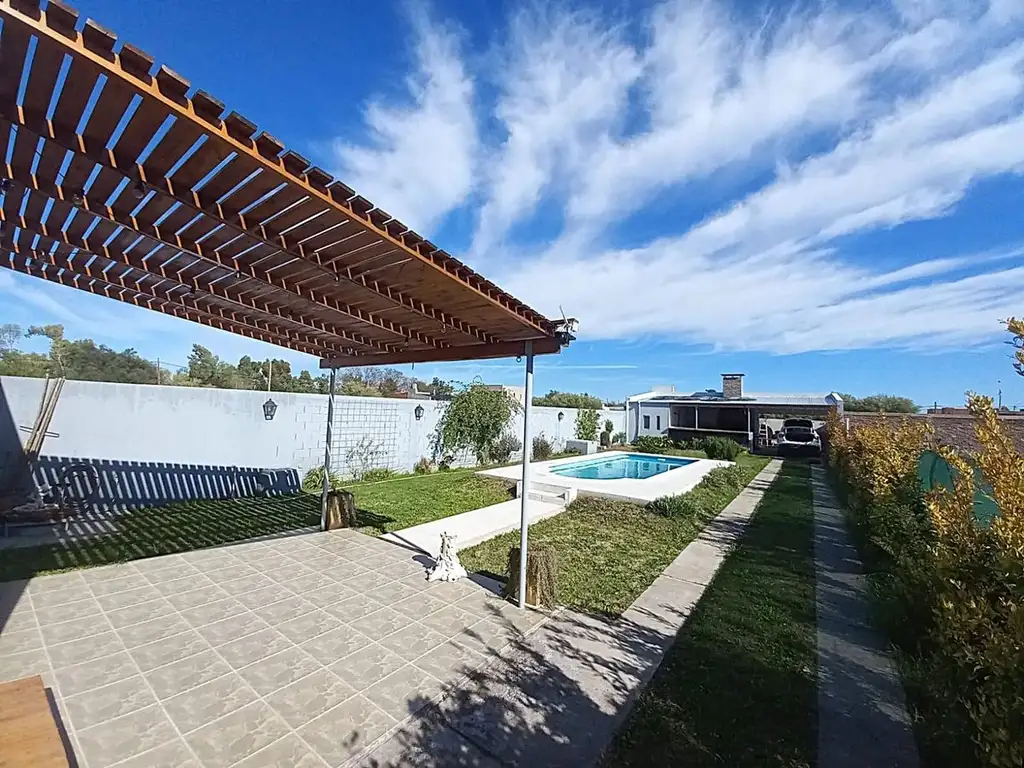 Gran Quincho semicubierto integrado al patio con una cómoda barra de madera, baño completo y dos habitaciones de buen lugar de guardado