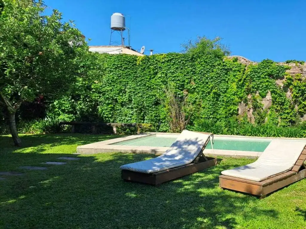 En el exterior, la vivienda ofrece un jardín con piscina 3.5m2 x 8.5m2 con todas sus instalaciones y quincho cubierto con parrilla. El ingreso es arbolado en frente y lateral que conduce al sector de piscina que cuenta con mucho espacio verde y de sombra.