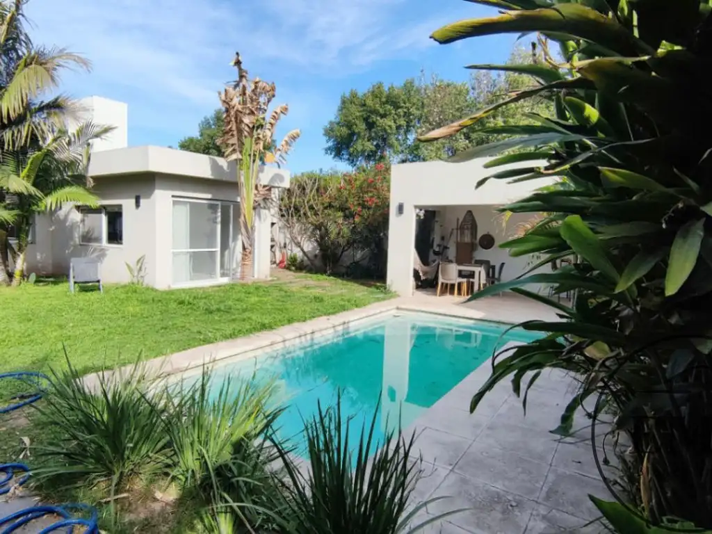 La casa dispone de 5 ambientes, distribuidos en 2 acogedores dormitorios y 2 baños, perfectos para una familia que busca confort y funcionalidad. La cochera es descubierta, y la propiedad también incluye una variedad de características que la hacen aún más atractiva: acceso a agua corriente, cable TV, pavimento, WiFi, aire acondicionado, cisterna, y energía solar, entre otros. El patio, el quincho, y la piscina permiten disfrutar de momentos de esparcimiento al aire libre, mientras que la parrilla y el desayunador son ideales para reuniones familiares.