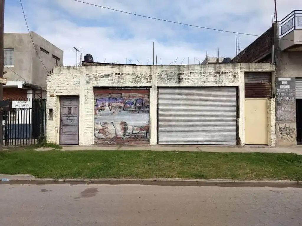 Local 8,63 x 9,76 con columnas y encadenado con dos cortinas metálicas ciegas, techo de chapa hasta la mitad, contrapiso