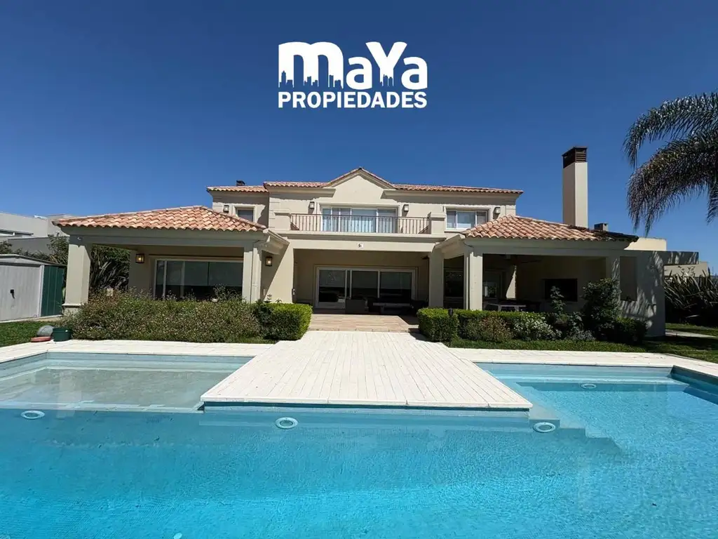 Al exterior un amplio jardín completamente parquizado con vista al golf, galería semi-cubierta con parrilla, pileta con doble playa húmeda y solarium. Al frente cuenta con ingreso de jerarquía, cochera semi-cubierta para dos (2) vehículos y descubierta para otros .dos (2).