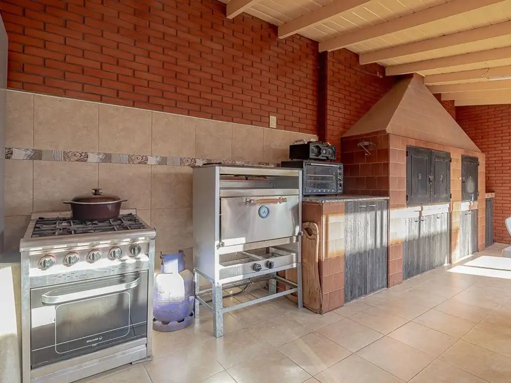 En el sector exterior cuenta con un quincho cerrado con puertas ventana de vidrio corredizas. Apto para verano o invierno y con buenas comodidades. Tiene parrilla cubierta, sector de lavadero y baño completo para visitas o para días de uso de pileta.