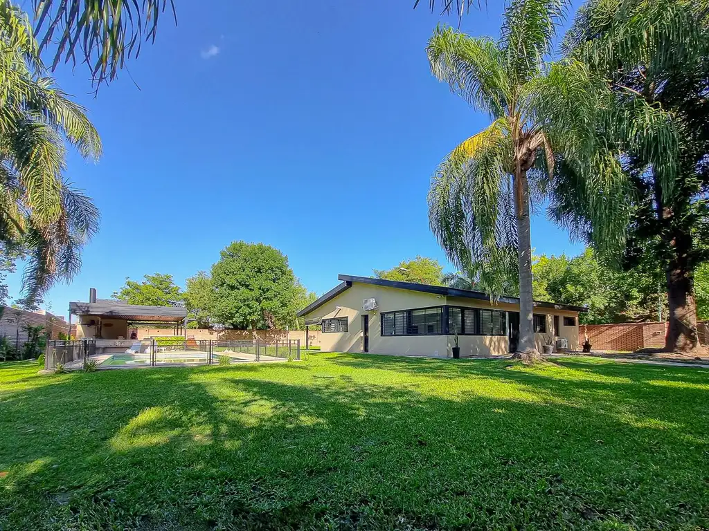 Casa compuesta por cocina con todos sus artefactos, muebles bajo mesada y alacena, comedor, living, 3 dormitorios, 2 baños completos, lavadero, galería, quincho con parrillero y piscina.